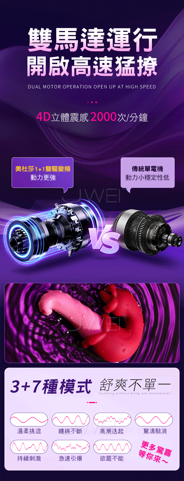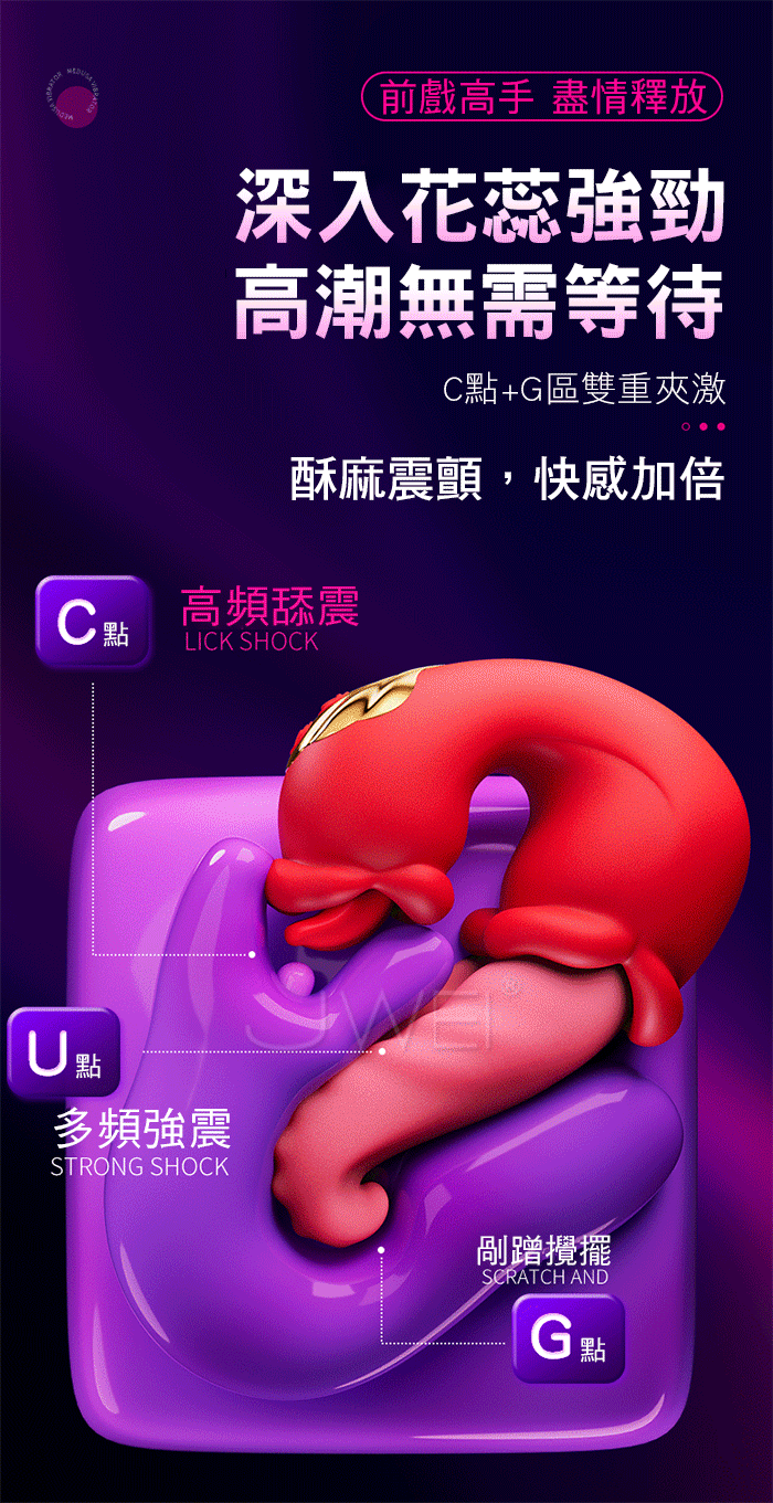 強震刺激 攪舔3頻7速,浪潮洶湧,遵從人體工學設計 入體不撑大