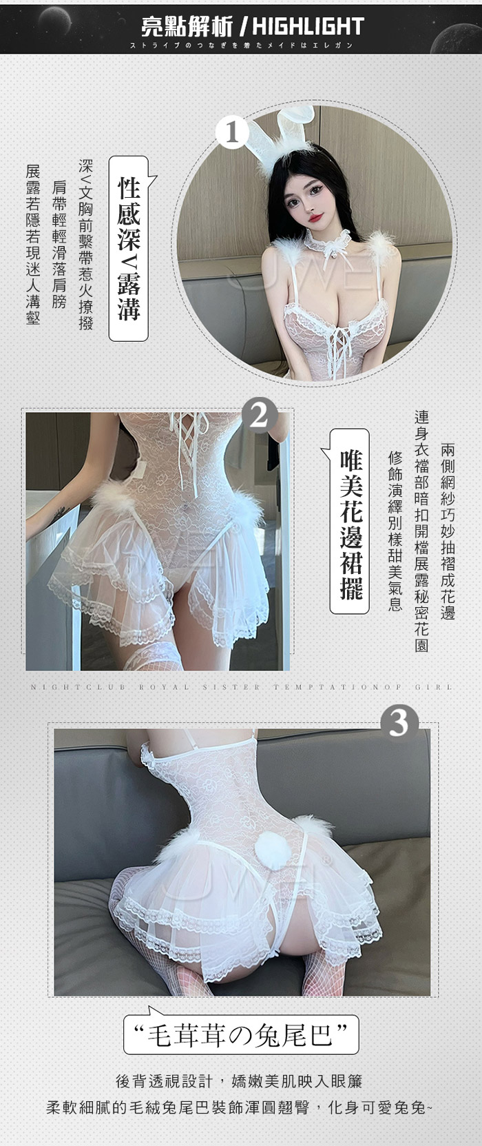 ■內容物:免耳髮箍+鈴鐺頸環+開襠連身衣 ■適穿尺寸:FREESIZE ■彈性:些許 ■未撐開平量尺寸正負誤差1~2cm,1吋=2.54cm ■注意事項:基於保障消費者個人衛生,此貼身衣物恕不接受退換貨。 (如為商品本身暇疵,接受七日內換貨,請勿試穿,謝謝您)