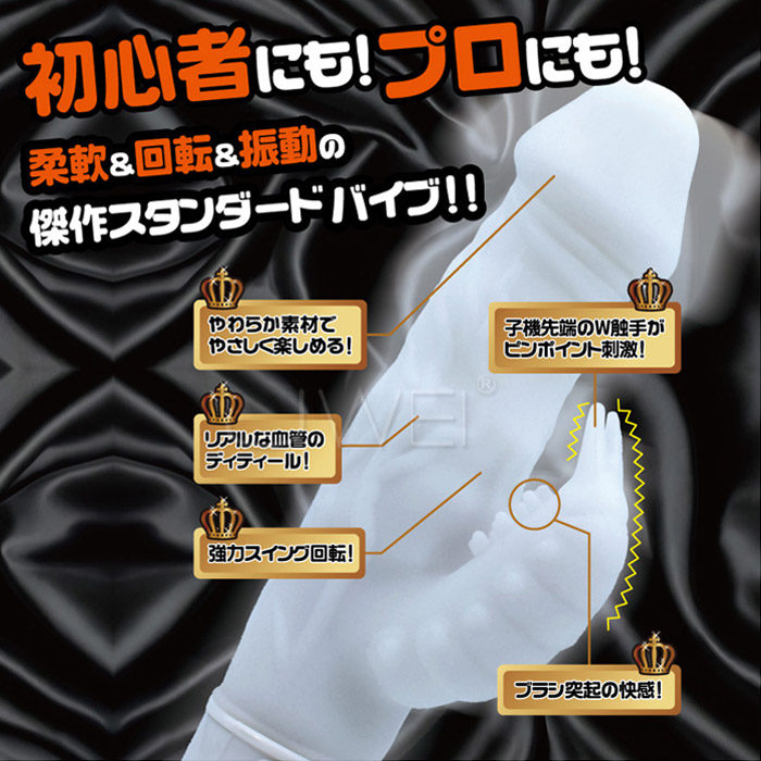 | 日本原裝進口T-BEST.バイブキング柔軟&迴轉&震動 仿真龜頭電動自慰棒-白色