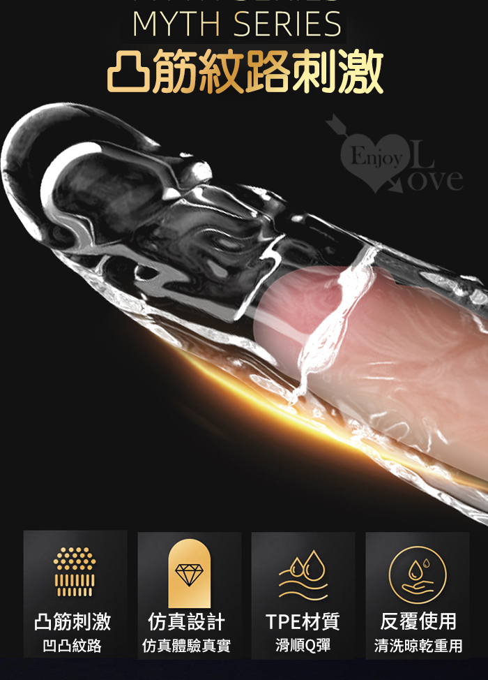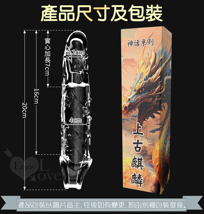 | 神話系列 麒麟 ‧ 凸筋紋路刺激 加長增粗猛男水晶套﹝前端實心加長7cm﹞