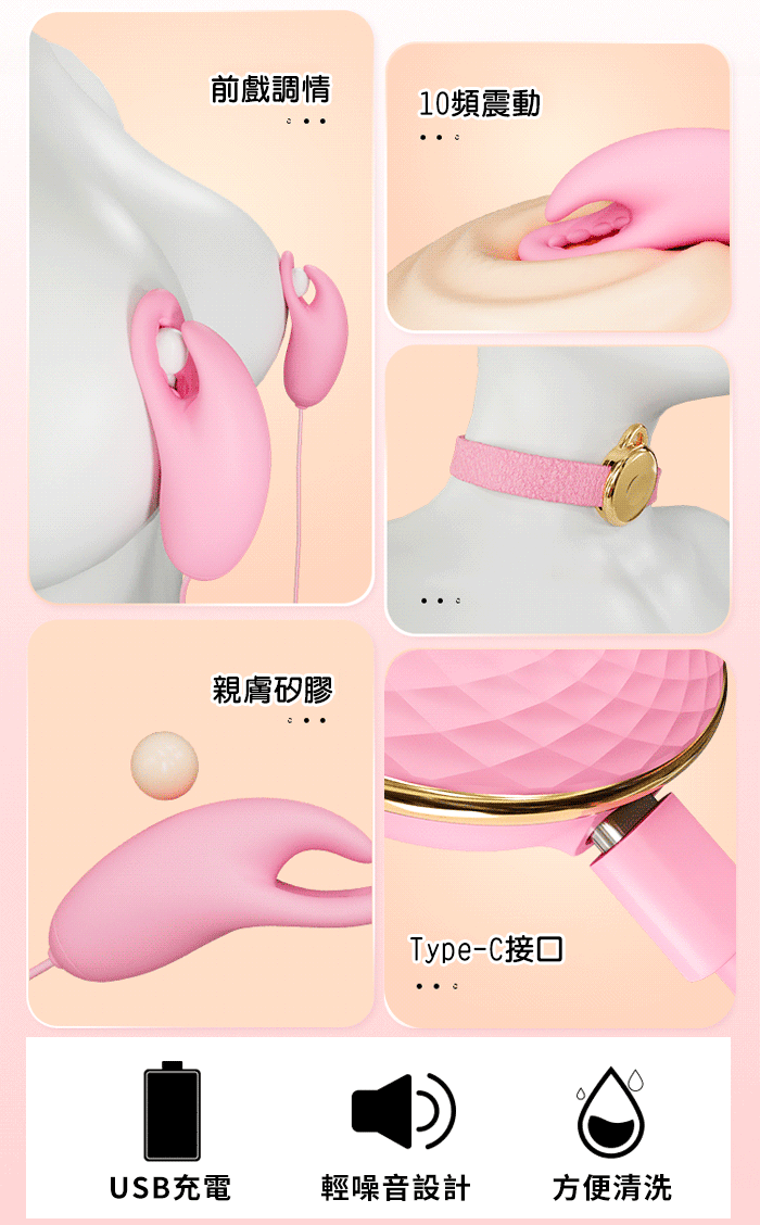 ►您現在的位置:首頁>YUNMAN 云曼 ‧ SM調教套裝 10段雙夾震撩乳 Q萌乳夾+頸圈束縛調教 磁吸設計/USB充電