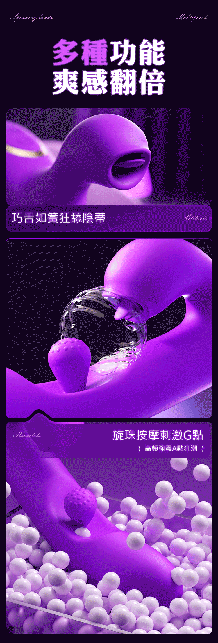 內外夾擊,高潮一浪高過一浪,旋珠按摩刺激G點。
