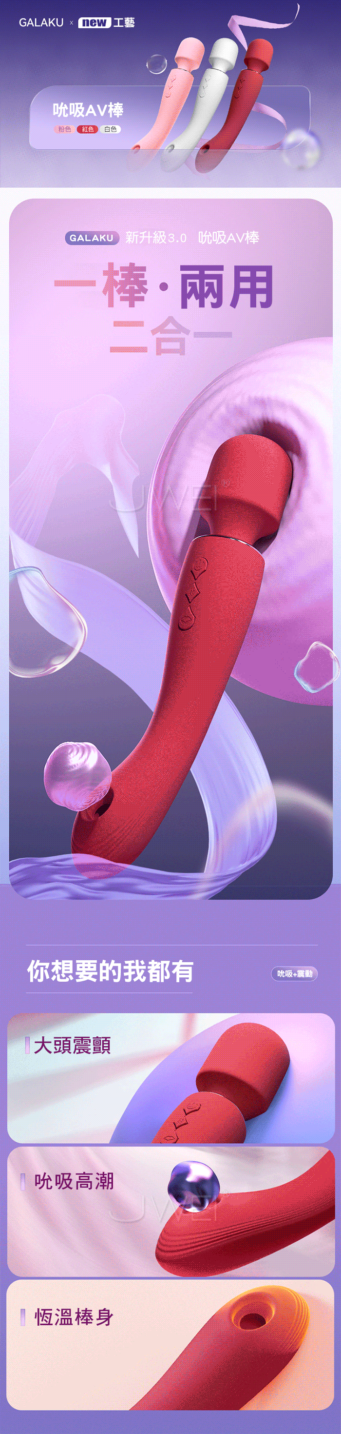 | GALAKU.皇后 10X10雙頭震顫G點吮吸 體感加溫智能APP操作 一棒兩用AV按摩棒【白色】