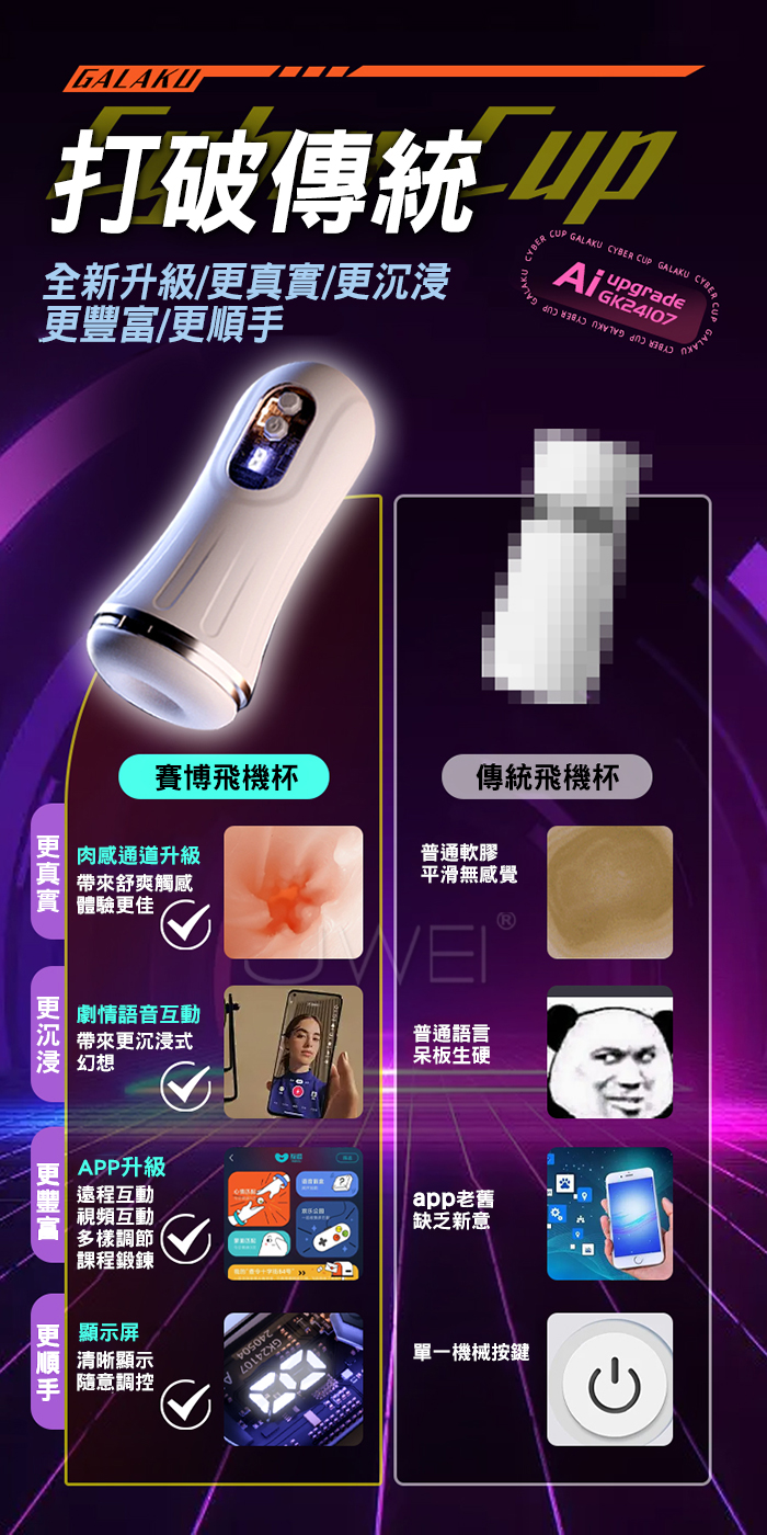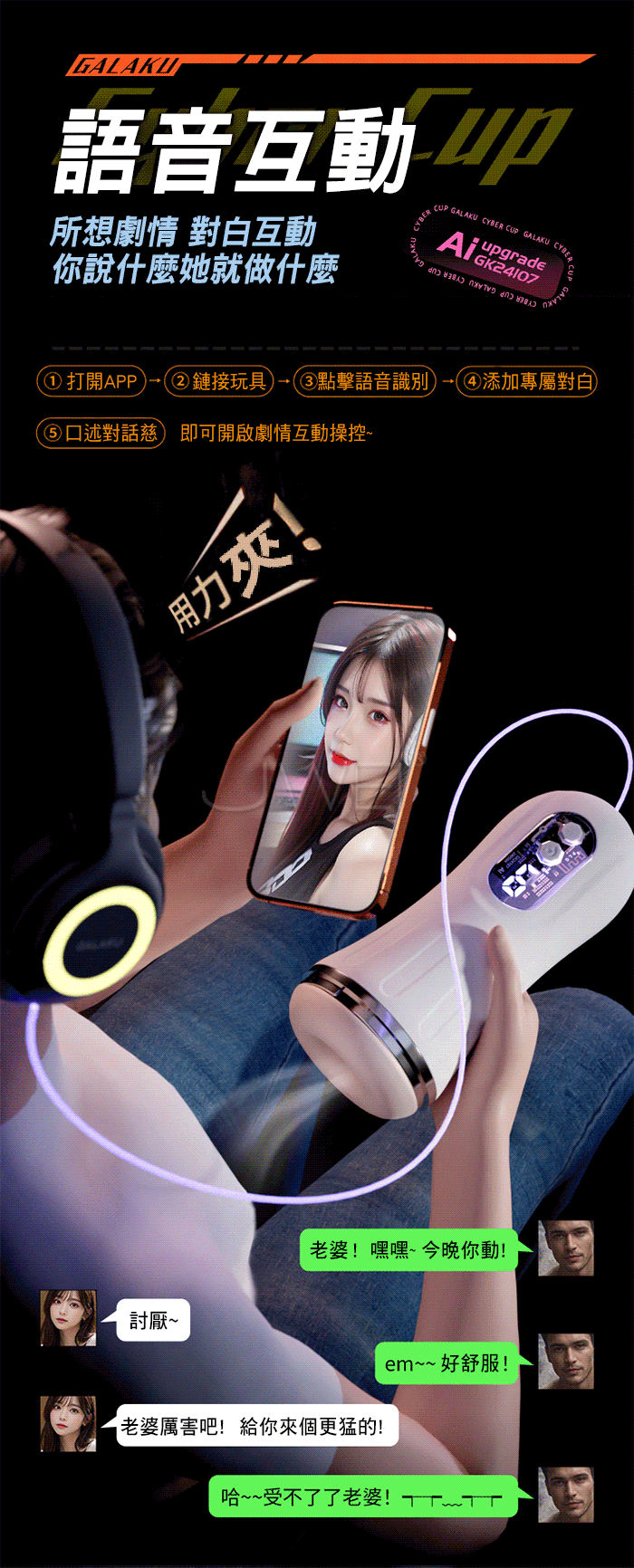 ►您現在的位置:首頁>GALAKU.賽博朋克 雙穴9頻夾震 真人叫床呻吟智能加溫 APP智控屏顯電動飛機杯