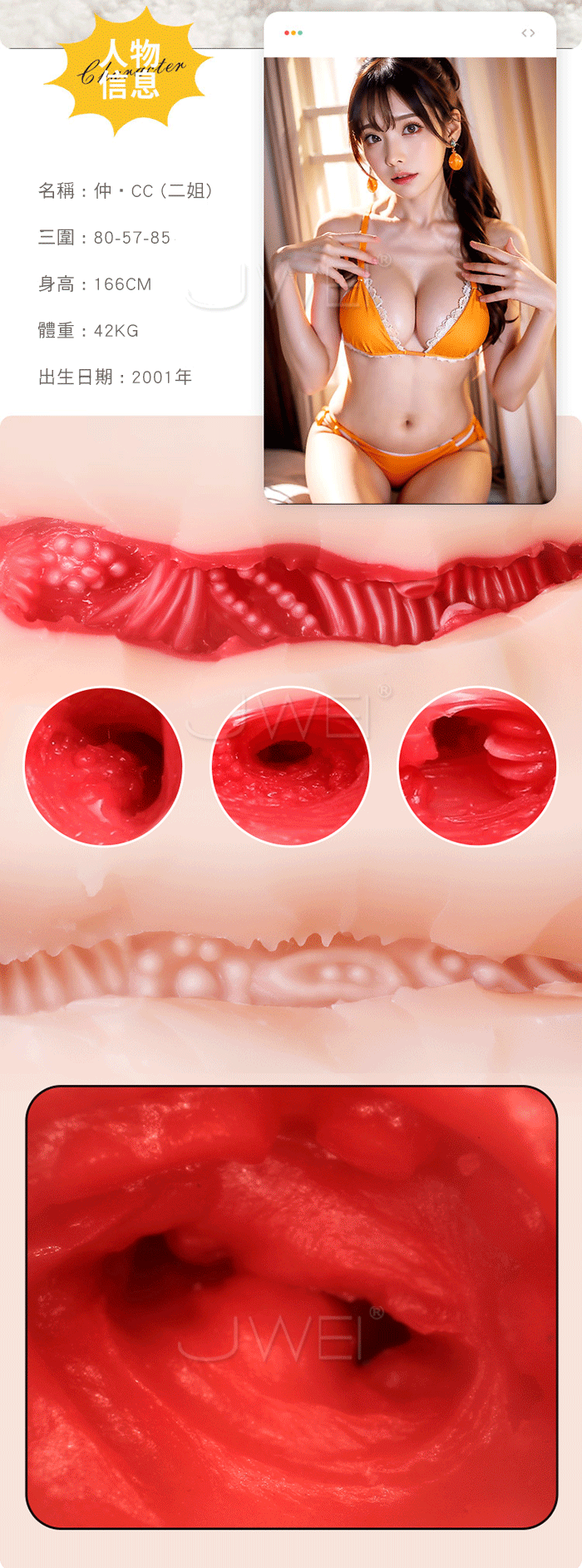 仲家三千金.雙通道真實肉感包裹 真人模特倒模系列名器【二姐CC】
