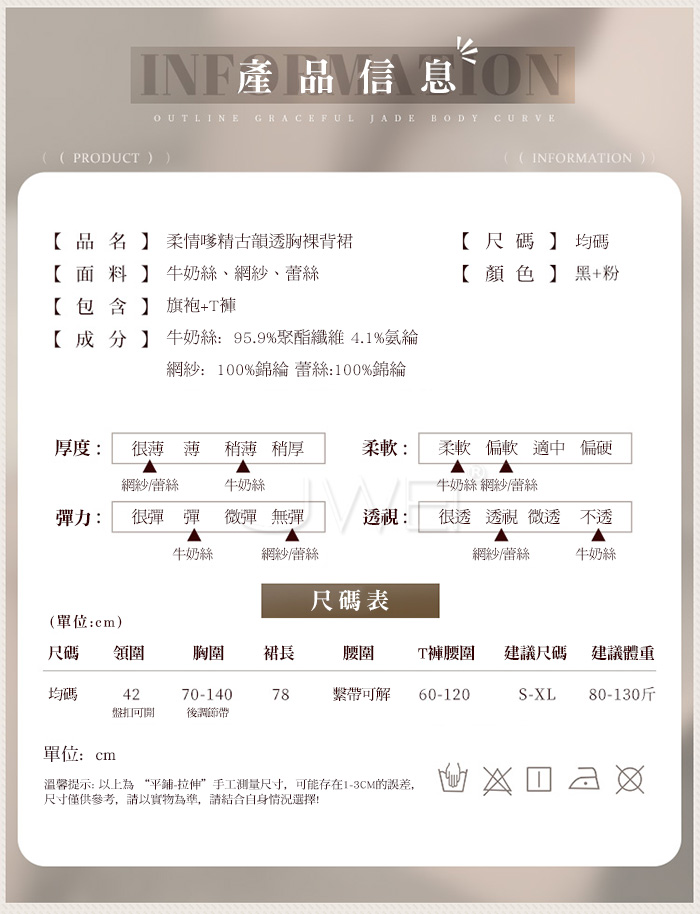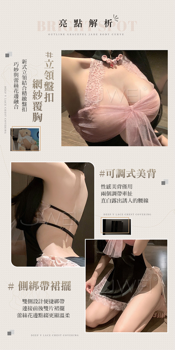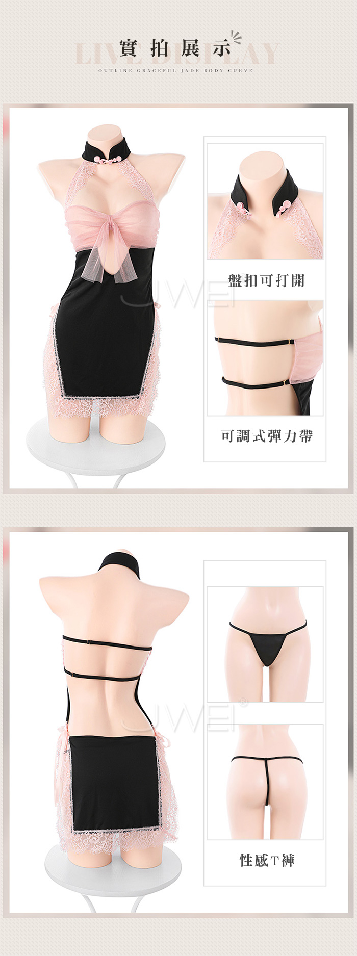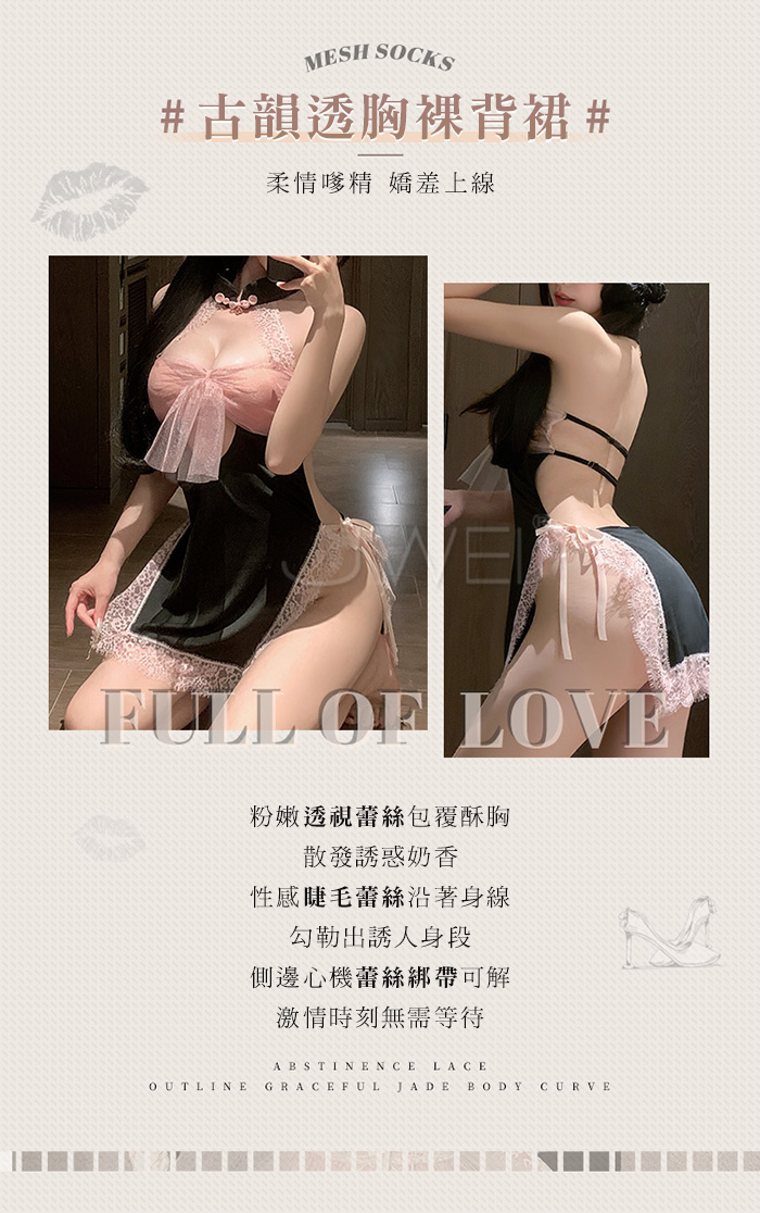 | 溫柔嬌妻.柔情嗲精古韻立領盤扣網紗透胸裸背裙【旗袍+T褲】