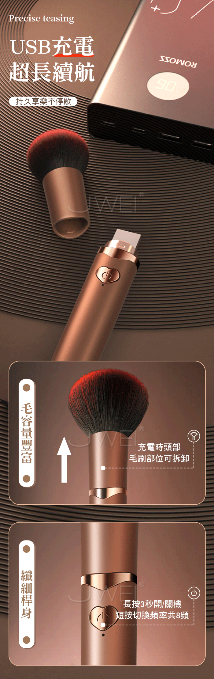酥麻強震,潮水來襲,柔軟毛髮撩人於無形,輕便隱蔽隨身攜帶~