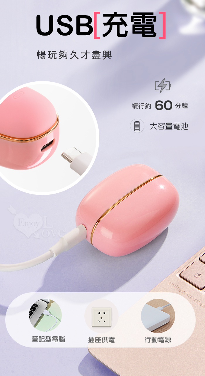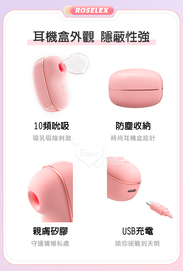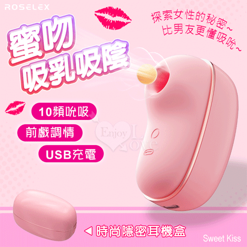 | ROSELEX 勞樂斯 ‧ 蜜吻 10頻吮吸/前戲調情/吸乳吸陰/USB充電 按摩器﹝時尚耳機盒造型﹞粉