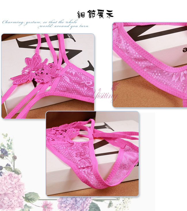 ►您現在的位置:首頁>甜蜜舞動!蝴蝶雙飛彈力細帶花卉網紗美臀T字褲﹝玫紅﹞