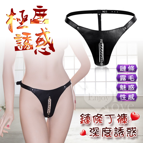 極度誘惑 - 女式皮質低腰露毛鏈條丁字褲