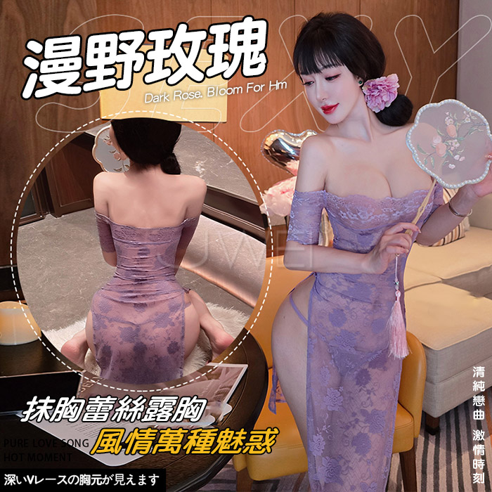 ►您現在的位置:首頁>慾情薔薇.蕾絲深V美肩露背花蔓透紗開襠連體衣【黑色】