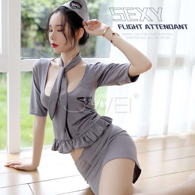 | 夜縛魅警.玩味綁帶束胸露背雙層褶裙警花cos套裝【上衣+裙子+T褲】