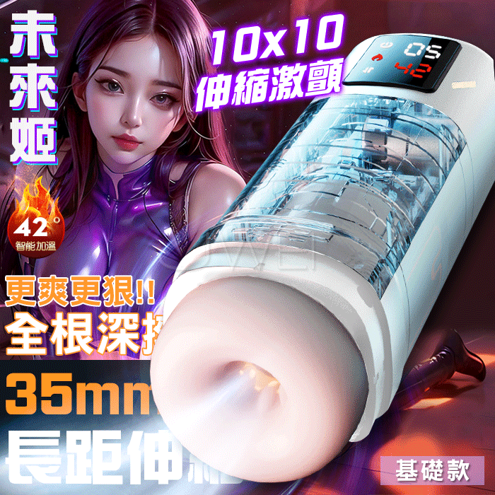 未來姬.10x10段伸縮激顫 4D肉感恆溫加熱屏顯飛機杯【白色基礎款】